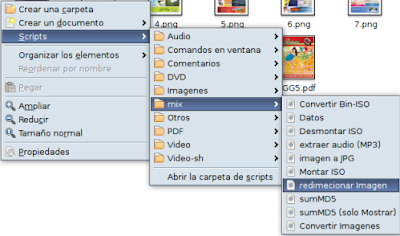 con este Script guardado en ~/.gnome2/nautilus-scripts/ y con permiso de ejecusión se logra que al dar clic derecho en cualquier parte dentro de donde se muestran tus imagenes se aparesca la opción de convertir tus imagenes, una muestra de como me aparece en mi maquina (junto a otros Scripts que he hecho anteriormente)