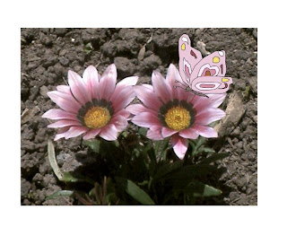 Como les comenté en mis post anteriores, soy muy inquieta... por esa razón, he seguido practicando con el programa y obtuve otra imagen, para ello, importé una foto de otra flor (ahora de color rosado), también tomada en Caripe (Edo. Monagas-Venezuela), ...luego pensé en una imagen para hacer como dibujo y se me ocurrió una mariposa, asi que dibujé una imagen de mariposa, la copié, la modifiqué un poco, trabajé con los vectores y le delimité las áreas abiertas y obtuve mi imagen dibujada para trabajar el color (paleta natural).