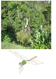 Hoy 6 de Abril he continuado mi trabajo con el tema color "paleta natural", esta vez escogí una foto de la vegetación que abunda en el Parque La Llovizna- Edo Bolívar-Venezuela, estuve pensando que dibujo podía utilizar para colorear y se me ocurrió una libélula.